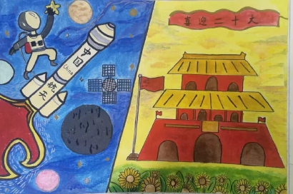 为庆祝祖国生日,迎接党的二十大召开,同学们通过手中的画笔,描绘祖国的大好河山、科技梦想、时代成就;描绘心中对祖国的美好和对未来的憧憬与向往;描绘民族团结进步的新画卷。这一幅幅绚丽的作品,每一笔、每一画中都渗透着孩子们浓浓的爱国情怀,他们怀着一颗爱国心,用笔墨来表达自己对祖国的祝福。