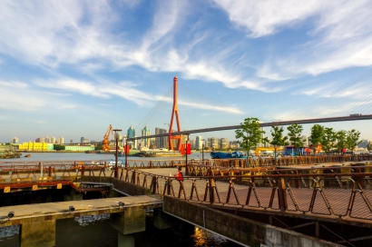 2017年,杨浦大桥以西至秦皇岛路码头的沿江约2.8公里岸线实现贯通。2019年,杨浦大桥以东2.7公里公共空间向市民开放。自此,杨浦的南段滨江5.5公里全部打通,从一条“轰鸣”的工业岸线,蝶变成开放共享的生活岸线、生态岸线、景观岸线。上海人的游览清单里,多了一个“东外滩”。