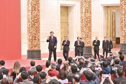 12时30分,见面会结束。习近平等向中外记者挥手道别。全场再次响起热烈的掌声。