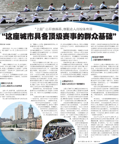 上海市体育局副局长罗文桦告诉记者,“高校学生和普通群众对赛艇表现出来的热情,也反映出上海在承办一个高规格的顶级比赛的同时,这座城市是具备这些项目的群众基础的,我们也觉得承办更多的顶级赛事,目的也是能够让更多身边的群众能够关注到这些项目,能够参与到这些项目当中来,从而在享受体育项目的同时,能提升自己的体质。”