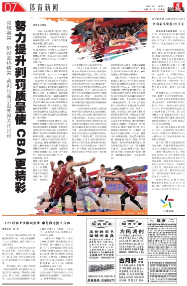 努力提升判罚质量使CBA更精彩