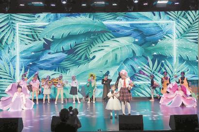 10月29日,第二届社区花园节“社区嘉年华”舞台上,小女孩豆豆和小伙伴一起演出了儿童舞台剧《我的乘风花园》,绽放花朵般的笑容。