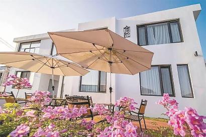 宿於的民宿每一幢有不同的装修风格,第一批有烘焙、陶艺、彩绘等主题,时光和纯粹是这两年新打造的两幢民宿,地中海风格的外观很出片,吸引了很多人来打卡。