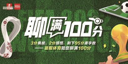 后记:卡塔尔世界杯将在6天后揭幕,晨报体育策划了多个报道栏目,有些会在报纸版面上呈现,有些会在新闻客户端周到APP上呈现,有些还会分享到晨报微信微博等端口,希望能陪各位读者过完2022年最后的激情月。其中一个栏目就叫“聊满100分”,我们的口号是:3分典故、2分感悟,剩下95分凑字数——晨报体育陪您聊满100分。有时候是一篇文字版的小评论,有时候是三两人神侃的一段小视频。