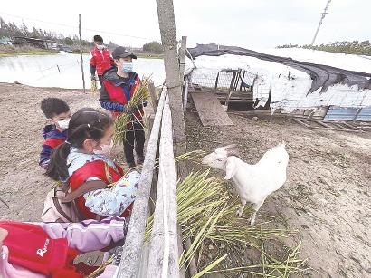 一到农场,我就被一大群的羊和鸡吸引住了!我第一次看到这么多的羊:有老羊,有小羊;有的有犄角,有的没有犄角;它们自由地在田野间穿梭跳跃。我开心极了,拿了老师分发的树叶条给羊儿们喂食。它们可能是饿了,都聚集过来啃食叶子,把枝条上的树叶都吃得干干净净,我也很高兴它们爱吃我给的食物。