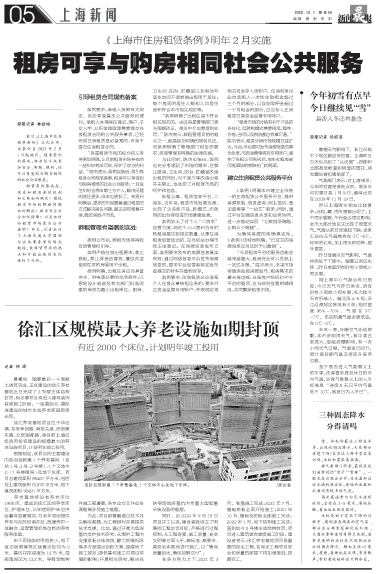 徐汇区规模最大养老设施如期封顶