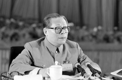 1989年6月,在中共十三届四中全会上,江泽民当选为中共中央政治局常委、中央委员会总书记。他在会上坚定指出:“党的十一届三中全会以来的路线和基本政策没有变,必须继续贯彻执行。在这个最基本的问题上,我要十分明确地讲两句话:一句是坚定不移,毫不动摇;一句是全面执行,一以贯之。”同年11月,中共十三届五中全会决定江泽民为中共中央军事委员会主席。1990年3月,在七届全国人大三次会议上,江泽民当选为中华人民共和国中央军事委员会主席。
