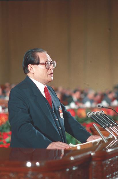 1997年9月12日,中国共产党第十五次全国代表大会在北京人民大会堂开幕。这是江泽民同志代表第十四届中央委员会作报告。