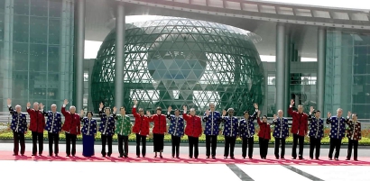 2001年10月21日,亚太经合组织第九次领导人非正式会议在上海举行。这是江泽民同志与参会的经济体领导人合影。