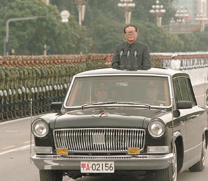 1999年10月1日,中华人民共和国成立50周年盛大庆典在北京天安门广场举行。江泽民同志检阅由人民解放军陆海空三军和人民武装警察部队、民兵预备役部队组成的地面方队。