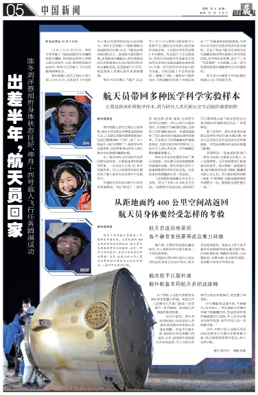 另外,专家介绍,3名航天员返回后还要进行为期半年的恢复训练,经过细致的观察评估后,转入正常训练。