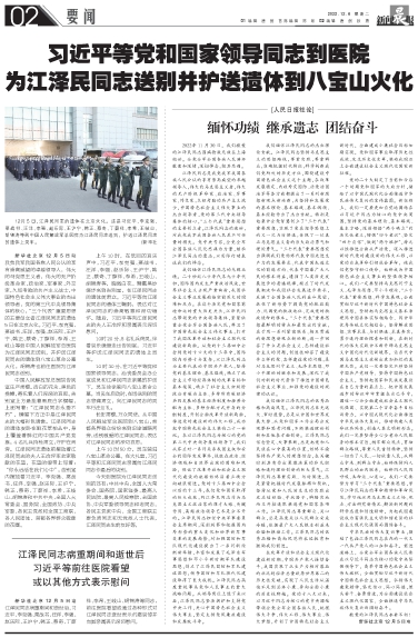 习近平等党和国家领导同志到医院为江泽民同志送别并护送遗体到八宝山火化