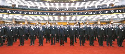 我党我军我国各族人民公认的享有崇高威望的卓越领导人,伟大的马克思主义者,伟大的无产阶级革命家、政治家、军事家、外交家,久经考验的共产主义战士,中国特色社会主义伟大事业的杰出领导者,党的第三代中央领导集体的核心,“三个代表”重要思想的主要创立者江泽民同志与世长辞,在全国各族人民心中引起无限悲痛。6日上午,中共中央、全国人大常委会、国务院、全国政协、中央军委在人民大会堂隆重举行江泽民同志追悼大会。习近平、李克强、栗战书、汪洋、李强、赵乐际、王沪宁、韩正、蔡奇、丁薛祥、李希、王岐山等参加大会。大会通过全国广播电视、新闻网站现场直播。举国上下,各族人民沉痛悼念江泽民同志。