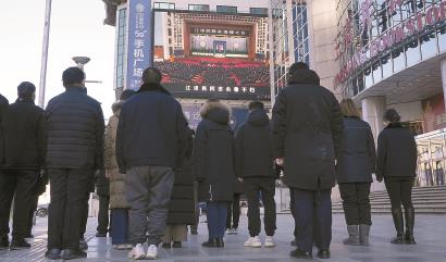 12月6日上午,中共中央、全国人大常委会、国务院、全国政协、中央军委在北京人民大会堂隆重举行江泽民同志追悼大会。举国上下,各族人民沉痛悼念江泽民同志。这是在北京王府井大街,群众肃立默哀。