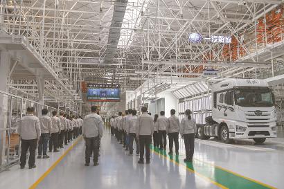 12月6日上午,中共中央、全国人大常委会、国务院、全国政协、中央军委在北京人民大会堂隆重举行江泽民同志追悼大会。举国上下,各族人民沉痛悼念江泽民同志。这是在吉林长春的一汽解放工厂车间,工人们收看江泽民同志追悼大会直播。