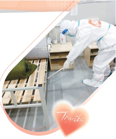 在方舱里,我的工作内容还和之前一样,打扫卫生、消毒、发放食物等等。最近,气温比较低,我们特地给那些仍住在方舱的人多准备了一床被子,还有一些军大衣备用。但我能明显体会到,这次接触的患者,对我们和医护人员都多了更多的包容与理解。而让我没有想到的是,在方舱工作期间,一段电影都不敢拍摄的剧情,竟在我的身上真实地上演了。