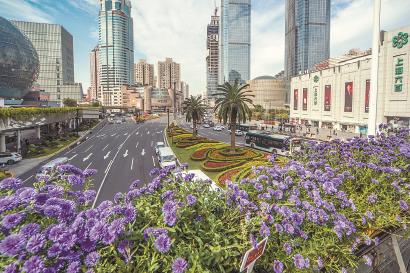 这条有景观标志性的空中步行廊道,为市民游客提供了“城市阳台”和新的漫步空间,姹紫嫣红的数十种新优花卉,让连廊和天桥成为徐家汇一道靓丽的风景线。