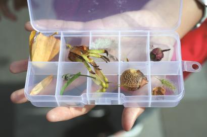 在经历了一个小时的探索后,我们每个人都捡拾到了各种果实,装满了自己的收纳盒。如今,这个小盒子就放在我的书桌边,每次看到它,我就能感受到种子们顽强的生命力,感受到秋之美!