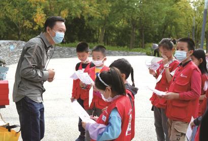 “大家看,它的叶子像件马褂,所以又叫马褂木。它的果实长着翅膀,在秋风吹拂下,可以飞得很远……这就是鹅掌楸。”秋日的一天,在桃浦绿地公园里,一个声音浑厚的男声响起。在他的身边,围着一群身穿“红马甲”的晨报小记者。没错,这里正在进行的,是晨报学记团桃浦记者站的自然探索活动!