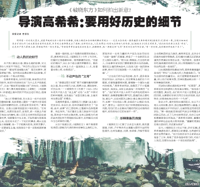“战士们带着伤痕,在大街上一动不动地很安静地卧着,包括普通人看到一个雄师大军进城后那样安静的状态,这里面有很多细节。”高希希说,这是以往影视剧里很少有的表达,“还有荣毅仁,他原本是迷茫、沮丧的,前一天晚上外面还有战火的轰鸣,第二天早上他突然发现到处寂静无声,他骑着自行车上街,才发现满大街都是士兵,他还用手试了一下他们的鼻息。确认这些战士是睡着,他一下子就高兴起来,回家求妻子,一定要留在上海,他相信这个党一定能把国家建设好。”