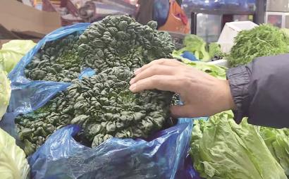 “塌菜是什么”听到这个提问,爷叔干脆带着记者去蔬菜摊位找了起来,“这就是塌菜”,爷叔指着塌菜说,过年要吃塌菜炒冬笋,寓意“塔塔铺”,可以理解为好得扑出来了,象征着满足、充足。