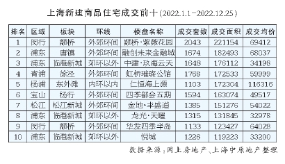 2022年,改善力量一直在支撑上海新房市场,套均总价600万以上每一个区间段和去年相比,占比都高于去年,而600万以内价位段都低于去年。此外,从成交前十榜单也可以看出,榜单中有2个10万+产品。而排名第一的则是均价接近9万元/平方米的项目。中高端改善依然是新房市场中比较抢眼的部分。