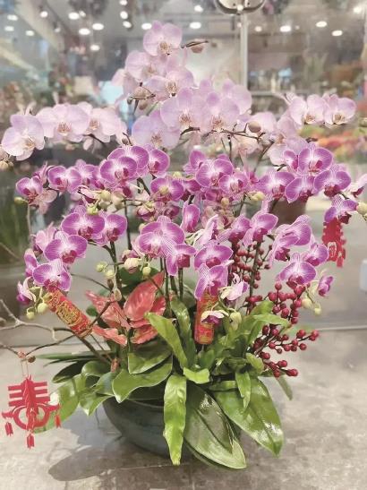 稳稳占据C位的年宵王者“蝴蝶兰”拥有着美轮美奂的外表,不愧它“洋兰皇后”的美誉,非常适合赠送长辈和亲友。