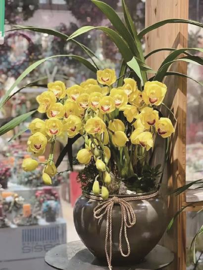 有的品种还带有花香,摆放在室内,非常气派,可营造出浓郁的春节氛围感。大花蕙兰适宜在10℃左右的温度,并且要注意遮光,切忌不能对着空调出风口吹。