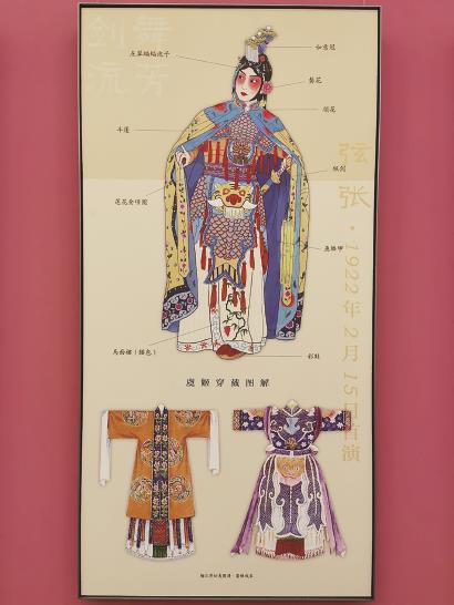 本次展览还展出了两套戏衣,分别是由梅兰芳纪念馆收藏的鱼鳞甲、斗篷和由上海市历史博物馆收藏的霸王靠,都是由著名戏服设计师谢杏生设计制作的。