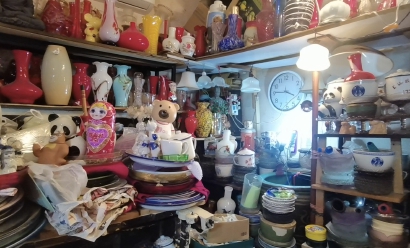 昏暗的灯光下,踏着木楼梯走上二楼,随着爷叔推开他们家的门,各式各样的年代感老玩意儿把整间屋子装得满满当当,随手拿起一个杯子,一个花瓶,就是拾起一段上海记忆。