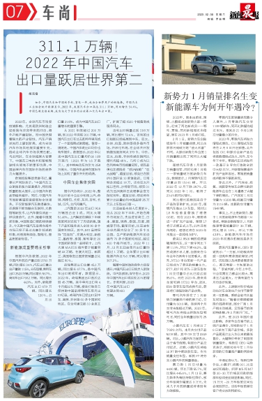 311.1万辆!2022年中国汽车出口量跃居世界第二