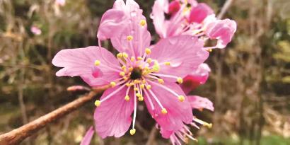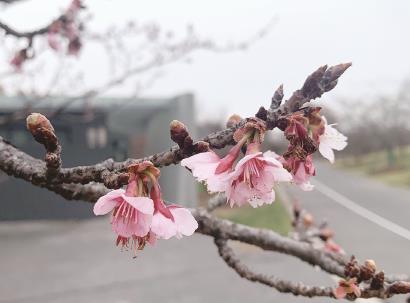 辰山植物园高级工程师虞莉霞介绍,今年1月的气温较之前两年偏高,特别是1月上旬后期出现了连续最高温15℃以上天气,使得辰山植物园的寒樱在春节前就零星绽放,开花量在5%左右,这是自2018年辰山植物园引种寒樱以来开花最早的一次,但春节期间的一波寒潮阻止了寒樱开放的步伐,并使得前期开放的花朵以及部分露瓣的花骨朵被冻伤。进入2月以来温度一直比较低而且阴雨为主,这也减缓了寒樱开花的步伐,目前开花量达到约30%,进入了观赏期,“寒樱是樱花园中花期最早的樱花品种,它的绽放预示着新一年的赏樱季已拉开序幕。”