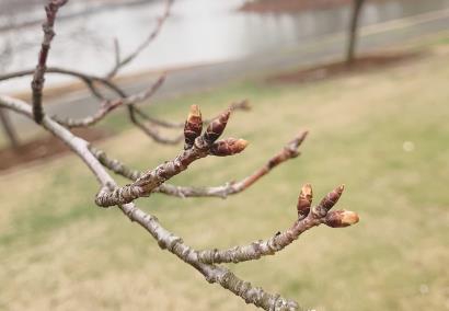 辰山植物园里,河津樱、钟花樱桃、迎春樱桃、大渔樱、泰山香樱、大寒樱、“御殿场”樱等早樱品种也都已陆续醒来,进入了花芽复苏期,花芽已打破了芽鳞片的包裹,露出了总苞片。