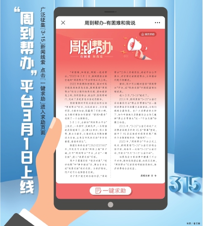 2023年,“周到帮办”平台正式上线后,新闻晨报“3·15”公益行动将全面升级,将每年一次的“3·15”公益行动,升级为“天天‘3·15’公益行动”。