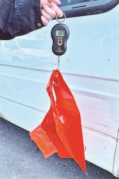 回到车上,“superB太”将袋子里的海鲜倒出,单独将塑料袋放上称,结果显示袋子重达60克,足足有一两多重。