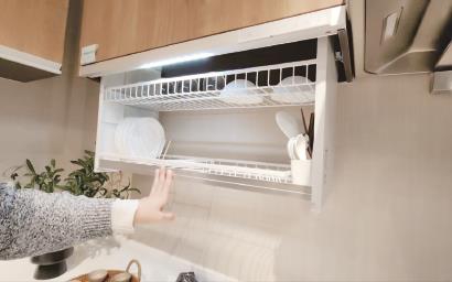 只要将拉篮降下来,就能轻松地拿取到高位置的物品,安全又方便,升降拉篮不仅仅在适老化改造中推荐使用,在当下装修中也是比较火的话题。