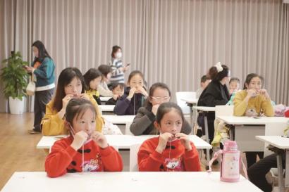 2月18日,青年口琴演奏家、亚洲口琴三冠得主、上海人民广播电台经典947频率古典音乐编辑赵晨曦,为小记者和社区居民带来了一场精彩的口琴分享会——《口袋里的春天》,让大家见识了各类口琴的样貌。每位前来参加活动的孩子,现场都获赠一支小口琴,并且学会一首小曲子。口琴声声中,大家度过了一个美好的春日。