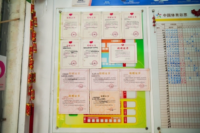 位于浦东新区乳山路249号的竞彩店在周围甚至在整个浦东地区都算有点名气,如果你是第一次去这家店的彩民,走进去,很可能会被挂满了小半堵墙的“捐赠证书”吸引。
