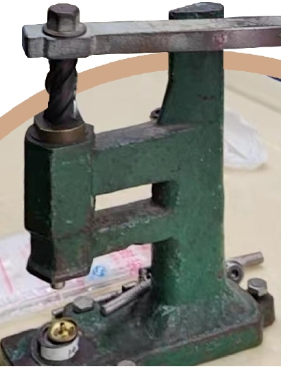 在周凯的店里,还有这种一台包扣机器,也是当时有不少人要修包扣,他们就去四处找来的。“稍微好一点的衣服,买回来有可能会送一块布料,就是方便钮扣掉了包包扣用的。”