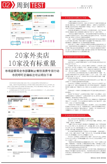 “我认为清楚标注对商家也是好事,不仅方便了顾客,还能避免因为消费者估不准份量而引发的投诉或纠纷,而且规范化的标注还可以增加顾客的信任度,让商家更有竞争力。”一名将自家外卖所有菜品都标注了重量的店老板表示。