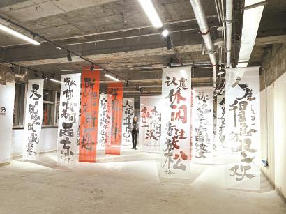 3月22日晚,记者在德必上海书城WE30层——一个毛坯楼层里就看到了这样一场书法展。