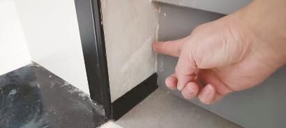 此外,程先生购买的金属踢脚线,在安装过程中,跟尚层装饰的施工人员也磨合得很辛苦。尚层装饰设计的2厘米踢脚线,施工人员也明确知道设计方案,但在施工时还是在墙角下留有4厘米的墙面没有做平,导致程先生自购的2.8厘米踢脚线无法安装。由于木作最终不是尚层装饰做的,后来主卧衣帽间两边的墙也不对称,让他连门都没法安装。