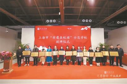 近日,上海市笔墨宫坊开业典礼在杨浦区茶岸文创园区举行。会上进行了上海市“非遗在校园”示范学校的表彰和授牌,罗店中心校被评为上海市“非遗在校园”示范学校。
