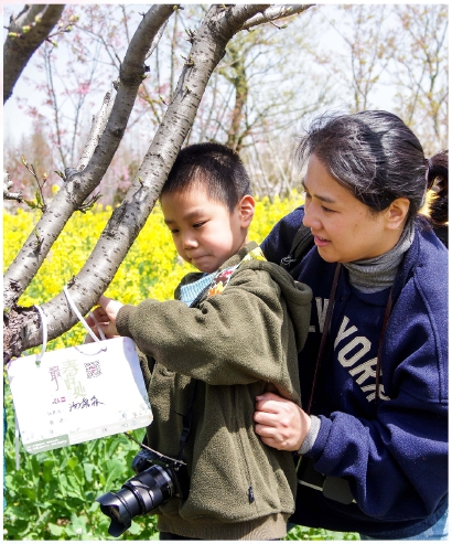 在人生不同阶段,覃女士为自己和不同的家人认养树木,代表不同的意义。最初两年,她是为自己认养树木,祝福自己,给自己加油。2007年,侄女出生了,是他们家中第一个小孩,就以侄女的名义认养了这棵树3年。此后,侄子出生了,就以侄女和侄子的名义各认养了一棵树。2018年,覃女士自己的小孩出生了,就帮儿子在顾村公园认养了一棵樱花树。