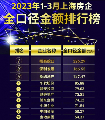 日前,2023年1-3月上海房企销售排行榜TOP50出炉。据CRIC数据监测显示(截至3月29日),1-3月上海商品住宅成交总金额为1492.67亿元,对比往年而言下探8.9%。从全口径金额排行榜来看,招商蛇口以226.29亿元高居榜首。值得注意的是,榜单各梯队之间差距日益加剧,尤其是TOP3房企业绩与后面几家的差距日益拉大。