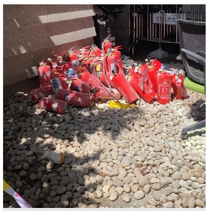 “我们当时就知道是消控室里的电器起火了,他们用干粉灭火器在那边灭火,不能泼水,我们也帮不上忙。但是消防车开过来后,我们才知道,这个小区里所有的消防栓里都没有水。”