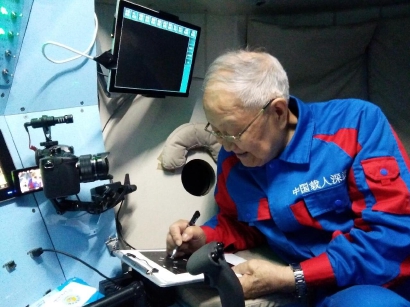 2018年5月,作为南海深部计划的“导演”,82岁的汪品先搭载“深海勇士号”载人深潜器,下潜到1400米处的南海深处进行科考,在9天内完成了3次下潜。