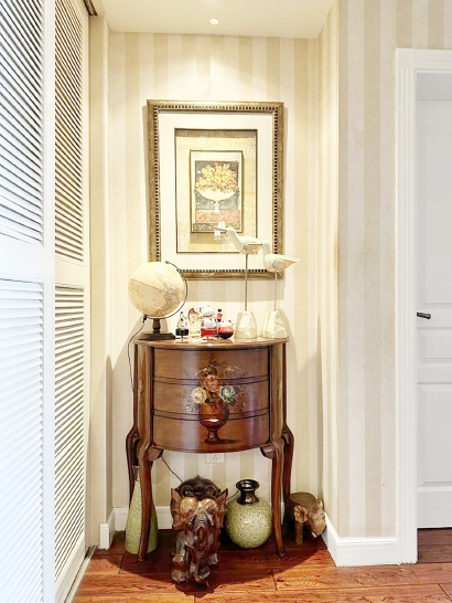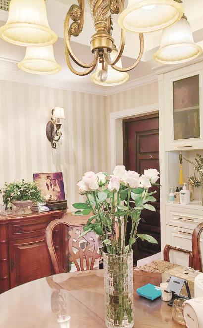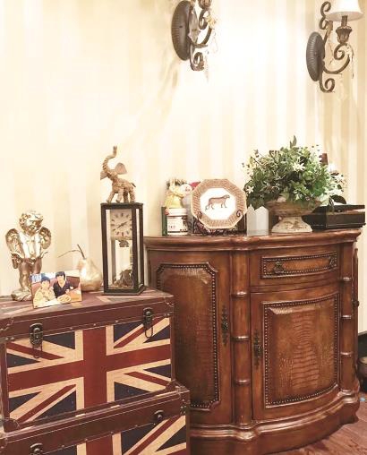 “当时准备装修的时候喜欢逛家具馆,一眼就看上了美克美家的一套家具,而它正好是偏美式风格,然后就决定整个家都围绕美式风来装修。”傅女士说。于是她就在装修网站上做了大量关于美式风格装修的功课,找到喜欢的效果图和实物照片,去家装市场找合适的墙纸、地板、瓷砖、门、灯具……