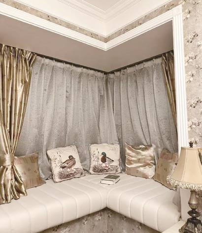 主卧飘窗,铺上淘宝上定制的超厚坐垫,成为晒太阳、休闲、看书的舒适角落。