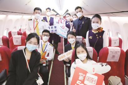 4月12日下午,金鹏航空Y87501次航班从上海浦东出发,顺利抵达三亚。与往日不同的是,这架航班也是新闻晨报和金鹏航空联合推出的航空主题航班。借着4月世界读书日即将到来的契机,金鹏航空将在接下来上海浦东出发的航班上把新闻晨报作为机上唯一配送的阅读媒体,为乘客和读者在万米高空送来“阅读的力量”。
